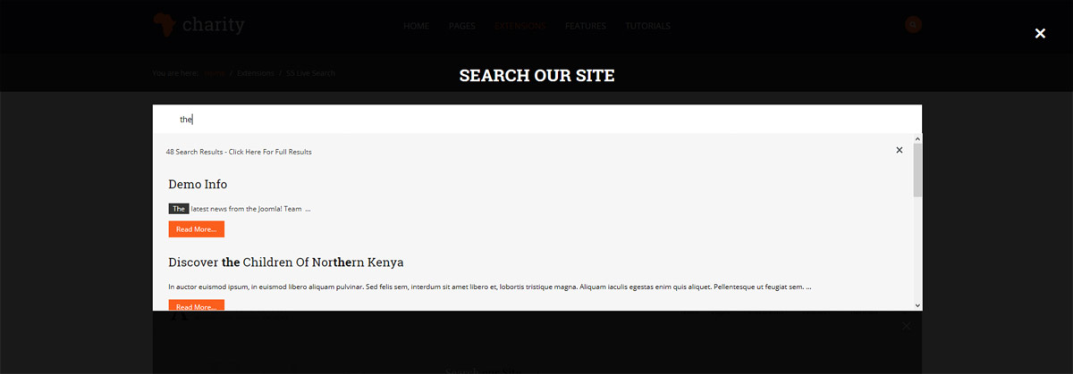 The S5 Live Search module is demo'd on this page and can be used on any Joomla template. The styling of the module shown here is customized specifically for this template with css overrides, and cannot be used with any other template. The same module can be used on any template, but with default or other styling in its place.